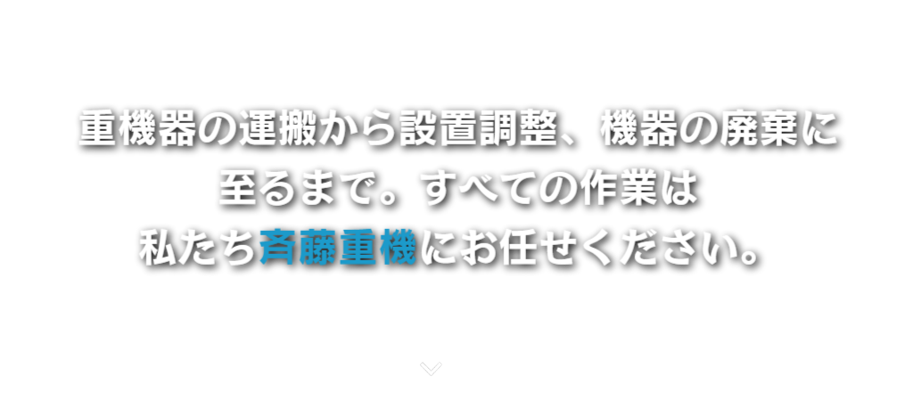 食品加工重機を得意とし、搬入搬出から設置・機器の調整、また不要となった重機の廃棄まで、一括したサービスをおこなえるのが、私たち斉藤重機の強みです。